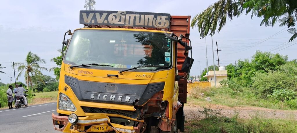 கள்ளக்குறிச்சி மாவட்டம் மங்கலம்பேட்டை கிராமத்தை சேர்ந்தவர் தமிழ்செல்வன். இவர் தான் புதிதாக வாங்கிய காரை குலதெய்வ கோவிலில் பூஜை செய்வதற்காக மனைவி சரண்யா மற்றும் 3 குழந்தைகளுடன் உளுந்துர் பேட்டைக்கு காரில் சென்றுள்ளார். உளுந்தூர்பேட்டை அடுத்த காட்டுநெமிலி கிராமம் அருகே திருச்சி – சென்னை நெடுஞ்சாலையில் சென்றபோது, எதிரே வந்த ஈச்சர் லாரியுடன் நேருக்கு நேர் மோதி விபத்திற்குள்ளானது.