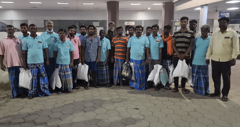இதை அடுத்து 24 மீனவர்களையும் இன்று அதிகாலை, இலங்கையின் தலைநகர் கொழும்பிலிருந்து சென்னை வரும் ஏர் இந்தியா பயணிகள் விமானத்தில் சென்னைக்கு அனுப்பி வைத்தனர். சென்னை விமான நிலையத்தில் மீனவர்களை, தமிழக அரசின் சார்பில், தமிழ்நாடு மீன்வளத்துறை அதிகாரிகள் வரவேற்றனர். அதன் பின்பு தமிழக அரசு ஏற்பாடு செய்திருந்த வாகனங்களில், மீனவர்களை அவர்களின் சொந்த ஊர்களான, புதுக்கோட்டை மற்றும் நாகப்பட்டினத்திற்கு அனுப்பி வைக்கப்பட்டனர்.