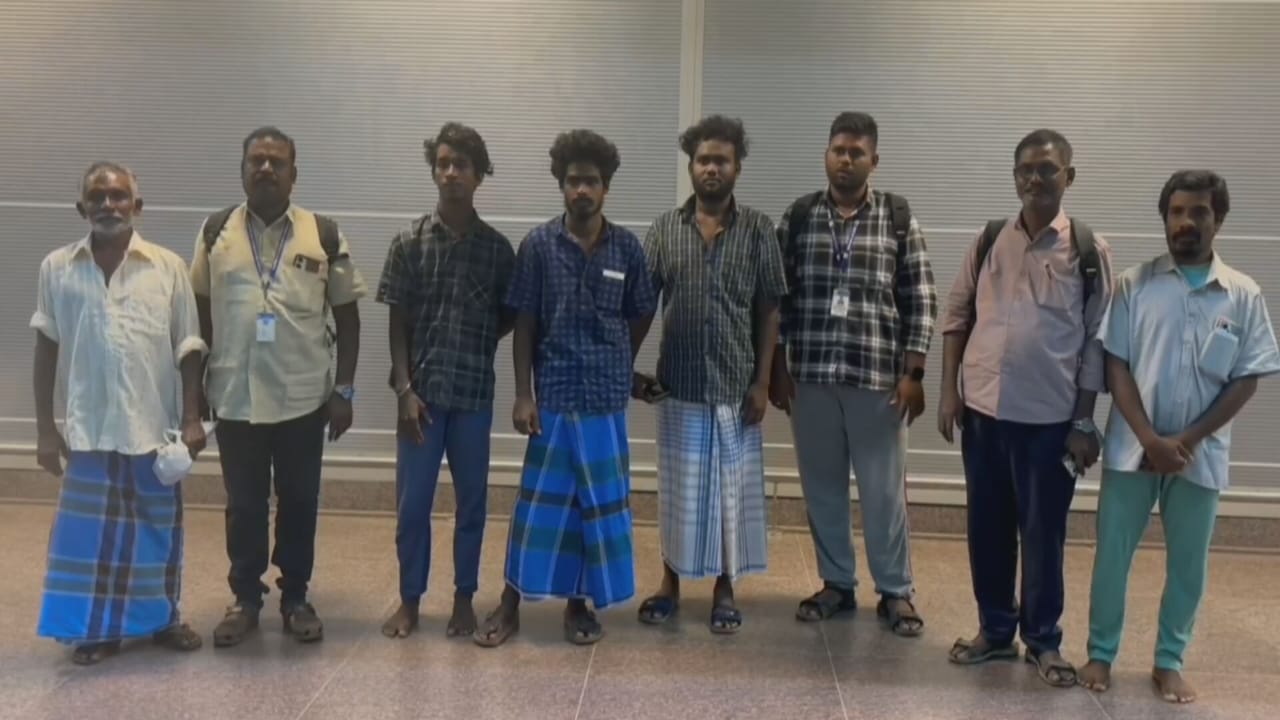 இலங்கை சிறையிலிருந்து விடுவிக்கப்பட்ட புதுக்கோட்டை மற்றும் ராமேஸ்வரத்தை சேர்ந்த 5 மீனவர்கள், இலங்கையில் இருந்து விமானம் மூலம் இன்று சென்னை வந்தடைந்தனர்.