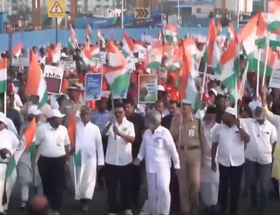 பாகிஸ்தானுக்கு எதிரான போரில் இந்திய ராணுவத்திற்கு ஆதரவு தெரிவித்து சென்னையில் திமுக தலைவரும், தமிழ்நாடு முதலமைச்சருமான மு.க.ஸ்டாலின் தலைமையில் பேரணி நடைபெற்று வருகிறது. சென்னை டி.ஜி.பி அலுவலகத்திலிருந்து முதலமைச்சர் மு.க.ஸ்டாலின் தலைமையில் தொடங்கிய பேரணியில் துணை முதலமைச்சர் உதயநிதி ஸ்டாலின், காவல்துறையினர், மருத்துவர்கள், மாணவர்கள், அரசு ஊழியர்கள் மற்றும் பொதுமக்கள் பல்லாயிரக்கணக்கானோர் பங்கேற்றுள்ளனர்.