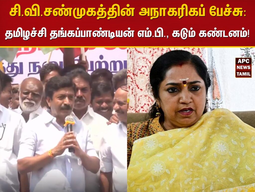 Homeசெய்திகள்தமிழ்நாடுசி.வி.சண்முகத்தின் அநாகரிகப் பேச்சு: தமிழச்சி தங்கப்பாண்டியன் எம்.பி., கடும் கண்டனம்!