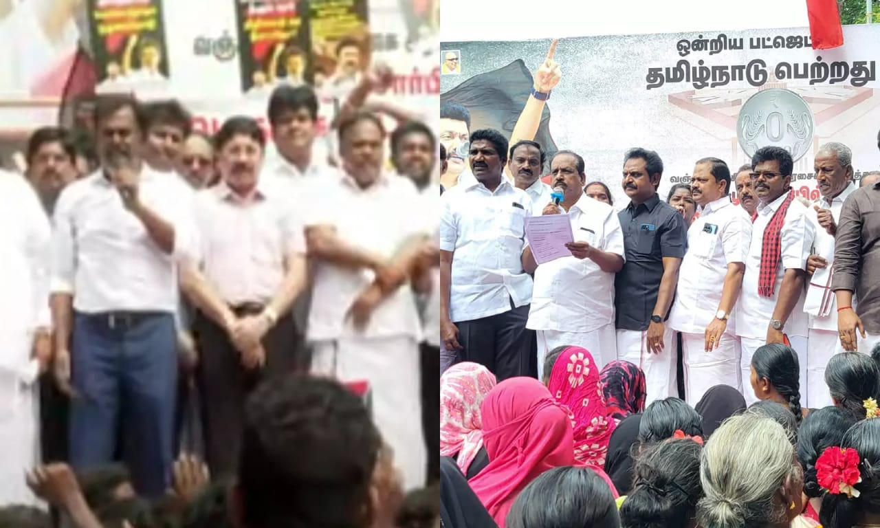மத்திய அரசின் பட்ஜெட்டில் தமிழ்நாட்டுக்கு சிறப்பு நிதி வழங்காததை கண்டித்து சென்னை மாவட்ட கலெக்டர் அலுவலகம் முன்பாக திமுகவினர் கண்டன ஆர்ப்பாட்டத்தில் ஈடுபட்டனர். கலெக்டர் அலுவலகம் அருகே மத்திய சென்னை பாராளுமன்ற உறுப்பினர் தயாநிதி மாறன் தலைமையில் திமுகவினர் கண்டன ஆர்ப்பாட்டத்தில் ஈடுபட்டனர். இந்த ஆர்ப்பாட்டமானது காஞ்சிபுரம் மாவட்ட கலெக்டர் அலுவலகம் அருகே திமுக தொண்டர்கள் கலந்துகொண்டு மத்திய அரசுக்கு எதிரே கோஷமிட்டனர்.இந்த ஆர்ப்பாட்டங்களில் சென்னை மேயர் பிரியா, மாவட்டக் கழக செயலாளர்கள், எம்.பி.க்கள், எம்.எல்.ஏ.க்கள், உள்ளாட்சி அமைப்பு பிரதிநிதிகள், கட்சி நிர்வாகிகள், மகளிரணியினர் உட்பட ஏராளமானவர்கள் பங்கேற்றுள்ளனர்.