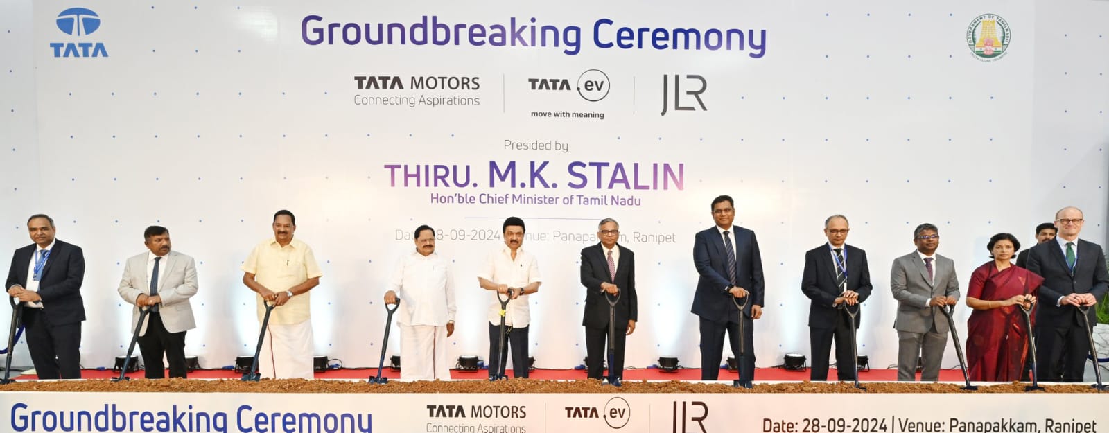 ராணிப்பேட்டை மாவட்டம் பனப்பாக்கத்தில் 470 ஏக்கர் பரப்பில் அமையும் டாடா மோட்டார்ஸ் நிறுவனத்தின் வாகன உற்பத்தி ஆலைக்கு முதலமைச்சர் மு.க.ஸ்டாலின் அடிக்கல் நாட்டி தொடங்கி வைத்தார்.