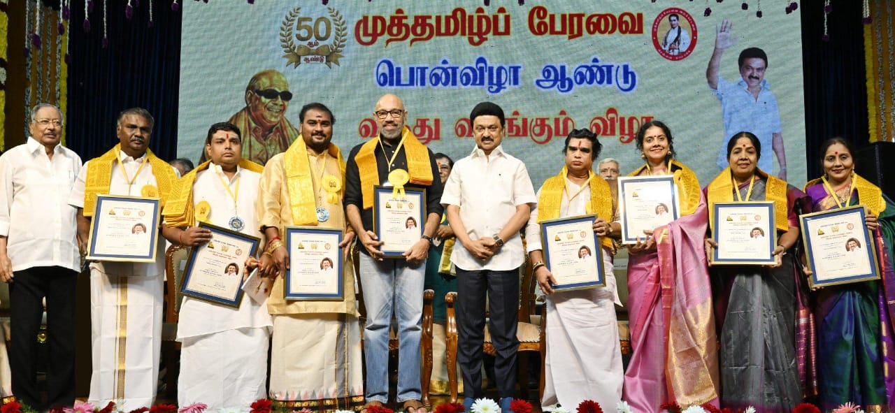 சென்னையில் நடைபெற்ற முத்தமிழ்ப் பேரவை பொன்விழா ஆண்டு விழாவில் நடிகர் சத்யராஜுக்கு “கலைஞர்”விருதை முதலமைச்சர் மு.க.ஸ்டாலின் வழங்கினார்.