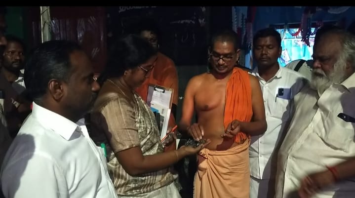 தஞ்சை மாவட்டம் திருவிடைமருதூர் அருகே சூரியனார் கோவில் கிராமத்தில் சூரியனார் கோவில் ஆதீனம் உள்ளது. இந்த மடத்திற்கு என 9 கோவில்கள் உள்ளன. இதனை கடந்த 2 ஆண்டுகளாக இம்மடத்தின் ஆதீனமாக உள்ள மகாலிங்க தம்பிரான் சுவாமிகள் நிர்வகித்து வந்தார். இந்த நிலையில், 57 வயதான இவர் கடந்த சில தினங்களுக்கு முன்பு கர்நாடகாவைச் சேர்ந்த ஹேமஸ்ரீ என்ற பெண்ணை திருமணம் செய்து கொண்டதாக அறிவித்தார். இதனைத் தொடர்ந்து பல்வேறு சர்ச்சைகள் எழுந்தது. இந்நிலையில் நேற்று முன்தினம் மடாதிபதியை கண்டித்து திருவிடைமருதூர் பகுதிகளில் சுவரொட்டிகள் ஒட்டப்பட்டன.