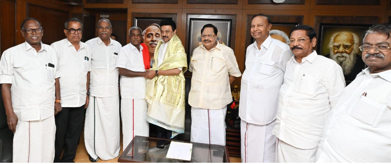 சென்னை தேனாம்பேட்டையில் உள்ள அண்ணா அறிவாலயத்தில் முதலமைச்சர் மு.க.ஸ்டாலினை, புதிதாக பதவி ஏற்றுக்கொண்ட மார்க்சிஸ்ட் கம்யூனிஸ்ட் கட்சியின் மாநில செயலாளர் சண்முகம், மத்திய குழு உறுப்பினர் கே.பாலகிருஷ்ணன் ஆகியோர் நேரில் சந்தித்து வாழ்த்து பெற்றனர். இந்த சந்திப்பின்போது அமைச்சர் துரைமுருகன், நாடாளுமன்ற உறுப்பினர் டி.ஆர்.பாலு, திமுக அமைப்பு செயலாளர் ஆர்.எஸ்.பாரதி, செய்தி தொடர்பு தலைவர் டிகேஎஸ் இளங்கோவன் மற்றும் மார்க்சிஸ்ட் கம்யூனிஸ்ட் கட்சியின் மாநில செயற்குழு உறுப்பினர்கள்