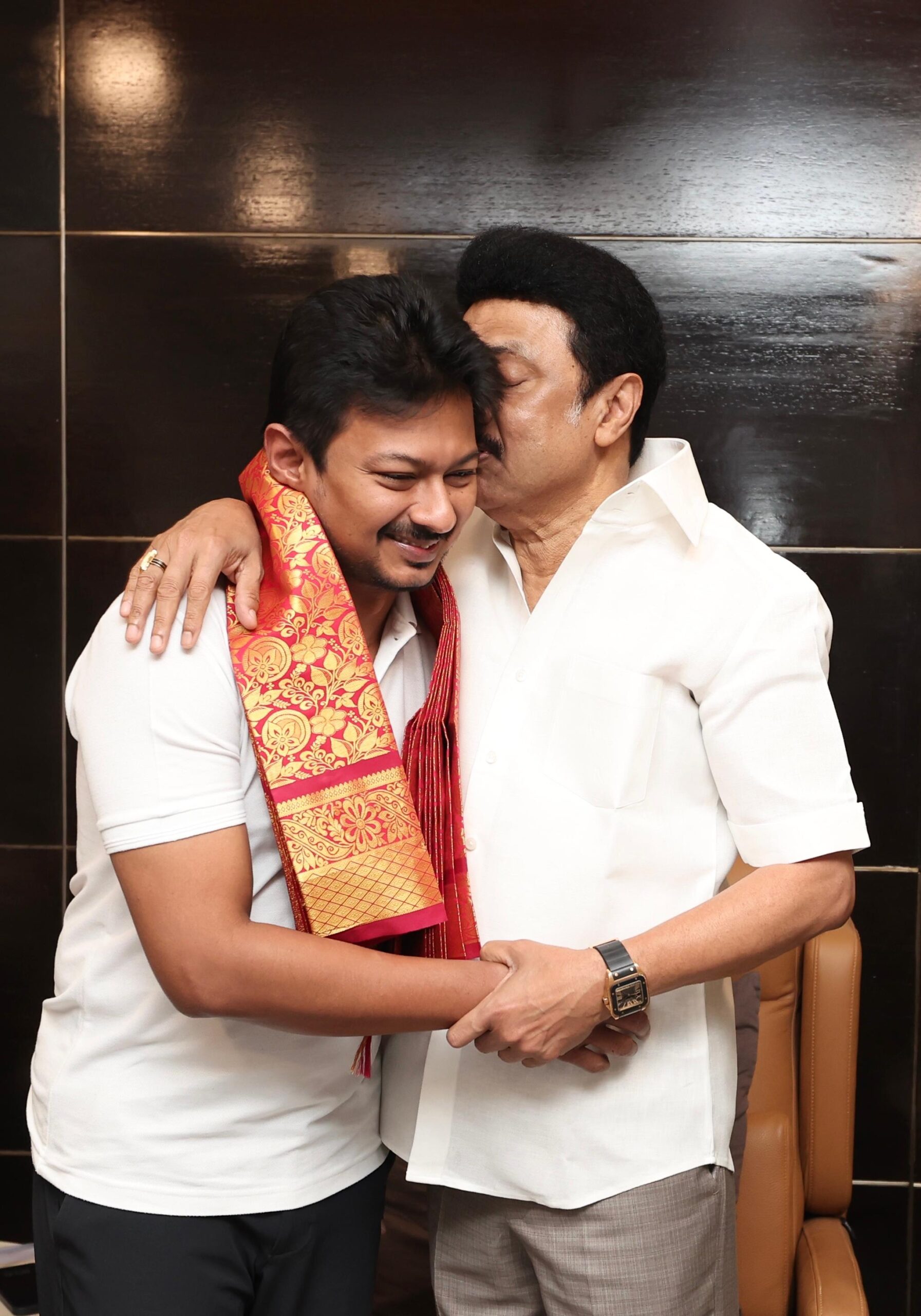 தமிழக துணை முதலமைச்சரும், திமுக இளைஞரணி செயலாளருமான உதயநிதி ஸ்டாலின் இன்று தமது 48வது பிறந்தநாளை கொண்டாடுகிறார். இதனை ஒட்டி சென்னை ஆழ்வார்பேட்டையில் உள்ள முகாம் அலுவலகத்தில் முதலமைச்சர் மு.க.ஸ்டாலினை நேரில் சந்தித்து வாழ்த்து பெற்றார். இந்நிகழ்வின் போது அவரது தாயார் துர்கா ஸ்டாலினும் உடனிருந்தார்.