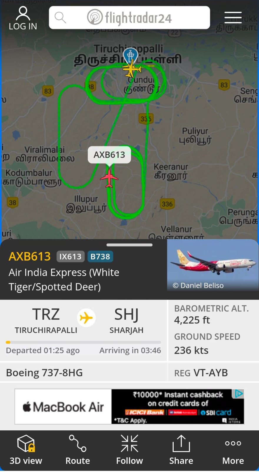 திருச்சியிலிருந்து ஷார்ஜாவுக்கு புறப்பட்ட விமானத்தில் தொழில்நுட்ப கோளாறு… 1 மணிநேரத்திற்கும் மேலாக வானில் வட்டமடிக்கும் விமானம்