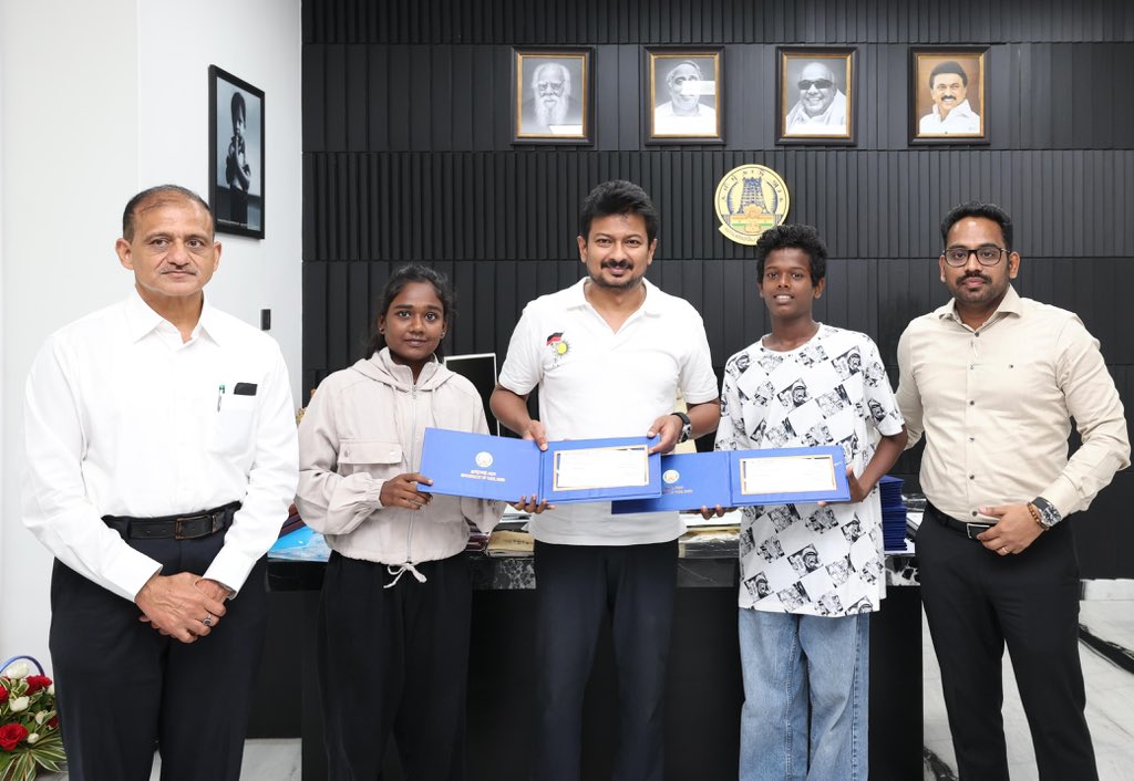 தமிழ்நாட்டு விளையாட்டு வீரர்கள் – வீராங்கனைகள், உலக அரங்கில் படைத்து வரும் சாதனைகளுக்குத் துணை நிற்கின்ற வகையில், விளையாட்டு மேம்பாட்டுத் துறையின் தமிழ்நாடு சாம்பியன்ஸ் அறக்கட்டளை மூலம் தொடர்ந்து நிதி உதவிகள் வழங்கப்பட்டு வருகிறது. அதன் ஒரு பகுதியாக, உலக டேக்வாண்டோ ஜுனியர் சாம்பியன்ஷிப் போட்டியில் பங்கேற்க உள்ள வீராங்கனை ஆர்.ஜனனியின் பயணம் உள்ளிட்ட செலவினங்களுக்காக ரூ. 3 லட்சம், ஸ்பெயின் நாட்டில் நடைபெறுகிற உலக ஸ்ட்ராங்மேன் சாம்பியன்ஷிப் போட்டியில் பங்கேற்க உள்ள டி. கண்ணனுக்கு ரூ. 2 லட்சத்திற்கான காசோலைகளை அமைச்சர் உதயநிதி வழங்கினார்.