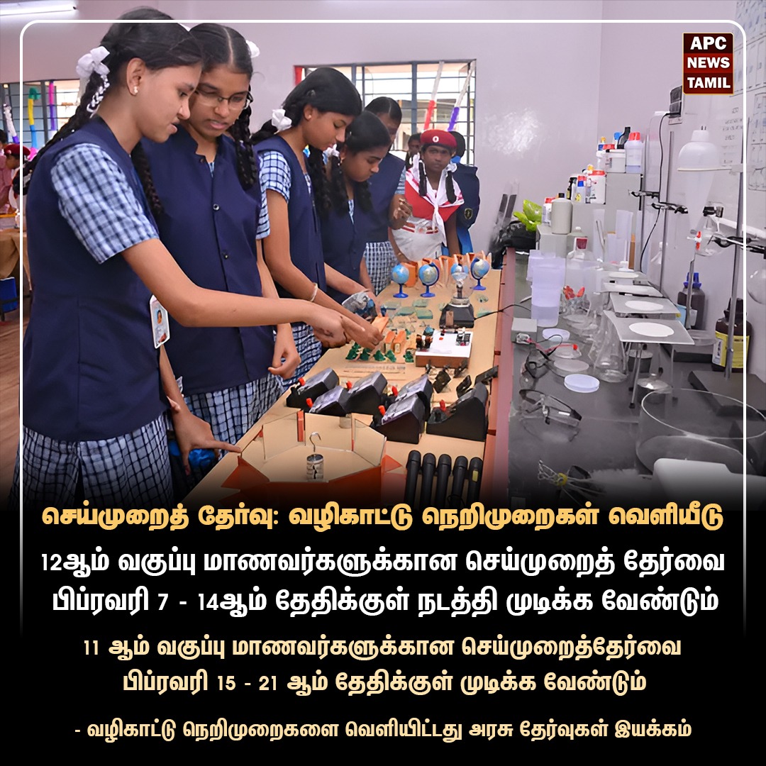 பிளஸ் 1 மற்றும் பிளஸ் 2 செய்முறைத் தேர்வுகளுக்கான வழிகாட்டு நெறிமுறைகளை அரசு தேர்வுகள் இயக்ககம் வெளியிட்டுள்ளது.
