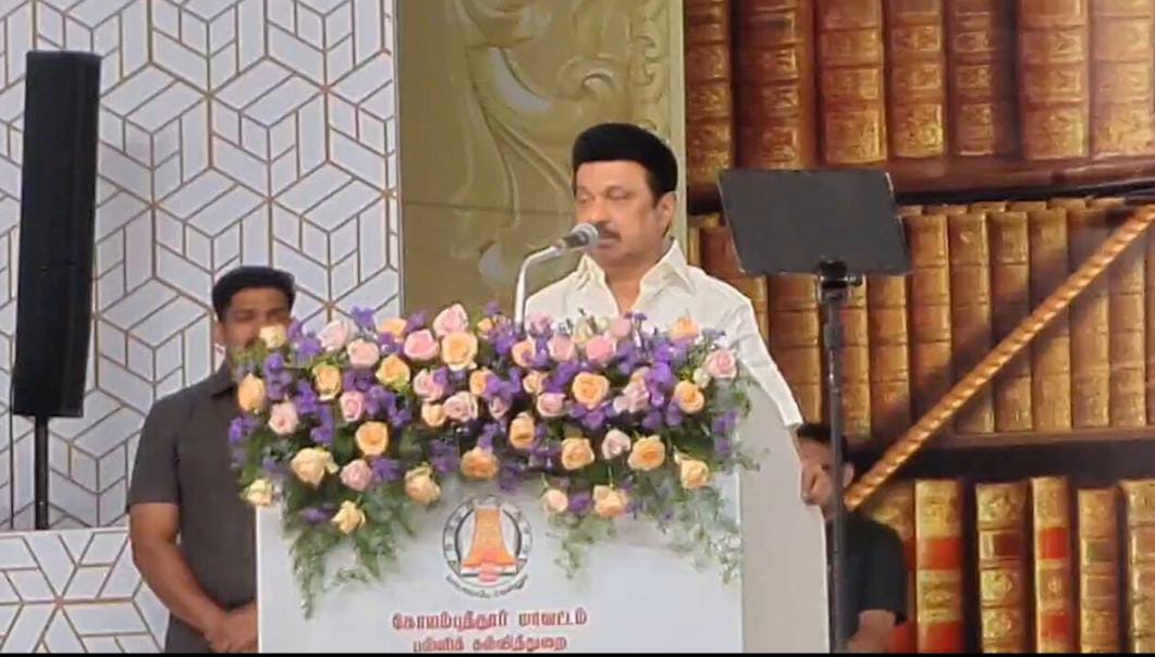 கோயம்புத்தூர் அனுப்பர்பாளையம் பகுதியில் 1.98 லட்சம் சதுர அடி பரப்பளவில் 7 தளங்களுடன் 300 கோடி ரூபாய் மதிப்பீட்டில் தந்தை பெரியார் நூலகம் மற்றும் அறிவியல் மையம் அமைக்கப்பட உள்ளது. பள்ளிக்கல்வித்துறை சார்பில் அமைக்கப்படும் இந்த நூலகத்தை முதலமைச்சர் மு.க.ஸ்டாலின் அடிக்கல் நாட்டி கட்டுமான பணிகளை தொடங்கி வைத்தார். தொடர்நது நிகழ்ச்சியில் முதலமைச்சர் மு.க.ஸ்டாலின் உரையாற்றினார்.