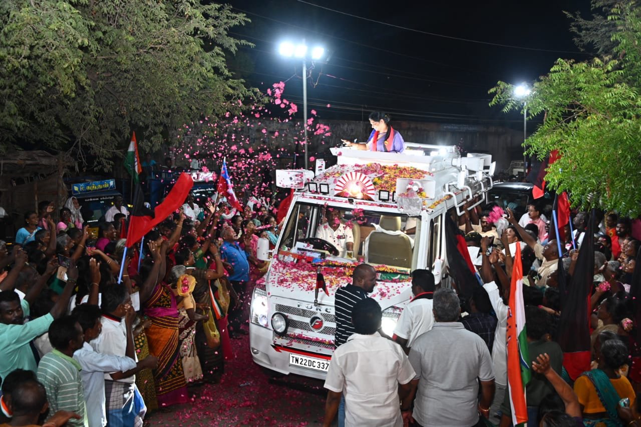 நடாளுமன்ற தேர்தலையொட்டி தூத்துக்குடி மாவட்டம் நாசரேத்தில் திமுக வேட்பாளர் கனிமொழி தேர்தல் பிரச்சாரம் மேற்கொண்டார்.