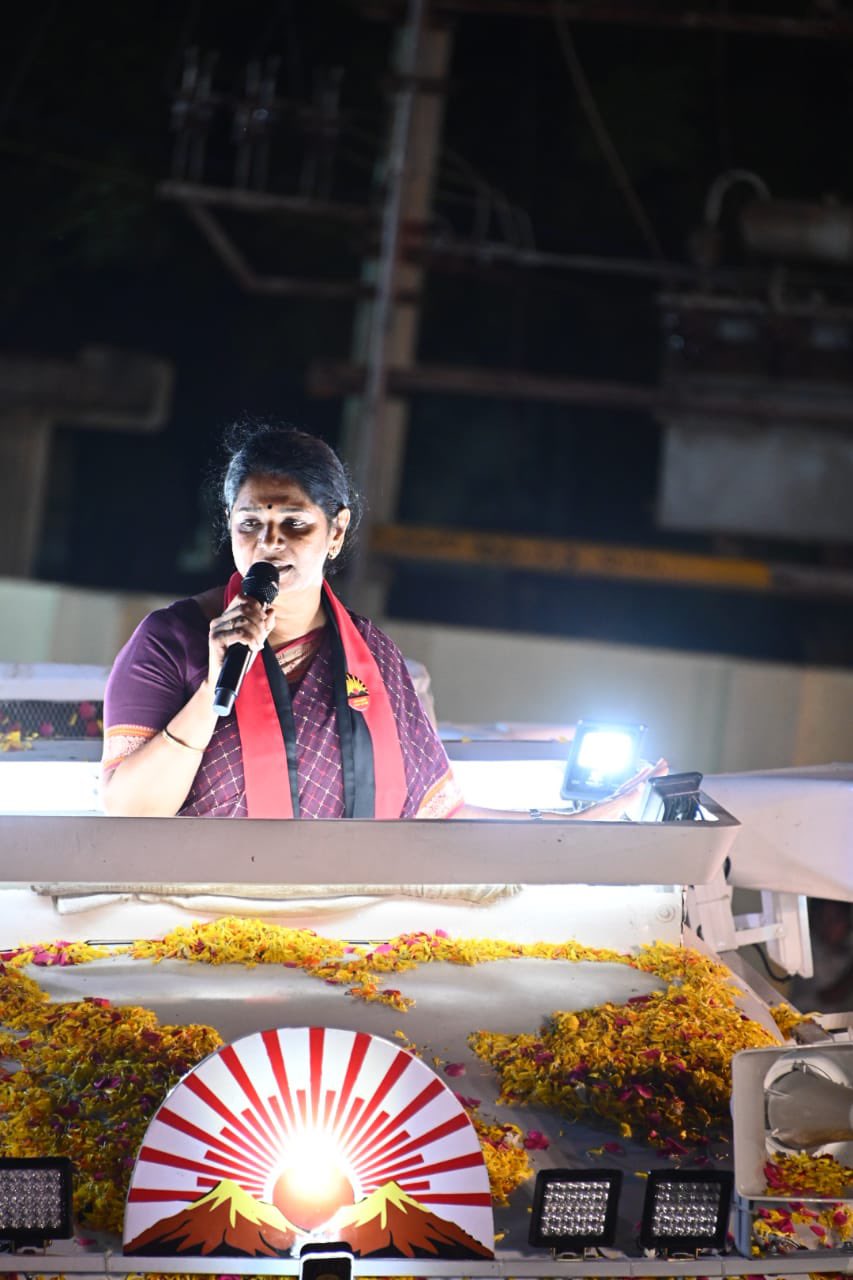 தொடர்ந்து பேசிய அவர் சமையல் கியாஸ் சிலிண்டர் 500 ரூபாய்க்கு வழங்கப்படும். பெட்ரோல் 75 ரூபாய்க்கும் டீசல் 65 ரூபாய்க்கும் வழங்கப்படும், இந்தியா கூட்டணி ஆட்சிக்கு வந்ததும் பெண்களுக்கு ஆண்டுக்கு ரூ.1 லட்சம் வழங்கப்படும். மேலும் பேசிய அவர் தூத்துக்குடி எனது இரண்டாவது தாய் வீடு என்று சொல்லும் அளவிற்கு உங்களின் அன்பை பெற்றவளாக இருக்கிறேன். எனக் குறிப்பிட்டுள்ளார்.