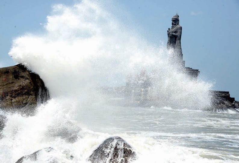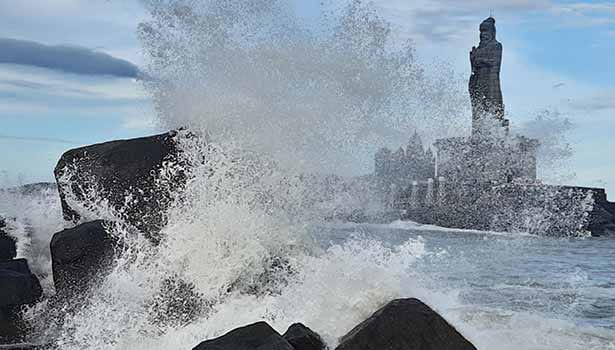 கன்னியாகுமரியில் கடல் அலைகள் ஆக்ரோஷமாக காணப்படுவதால் சுற்றுலா பயணிகள் படகு சேவை செய்ய அனுமதி மறுக்கப்பட்டுள்ளது.