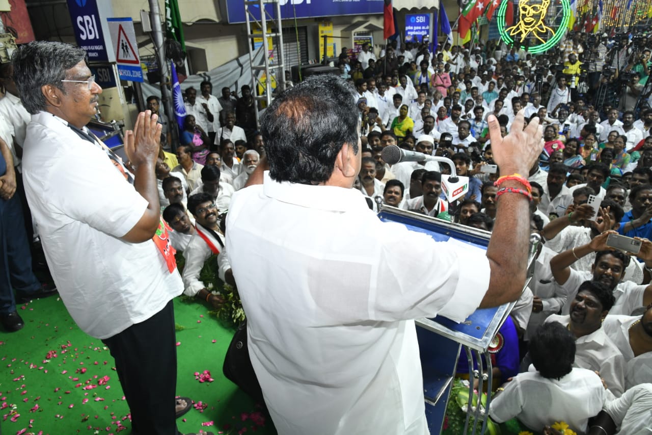 @EPSTamilNadu அவர்கள், நேற்று சென்னை வடக்கு நாடாளுமன்றத் தொகுதிக்கு உட்பட்ட கொளத்தூர், பெரவலூர் சந்திப்பில் நடைபெற்ற தேர்தல் பிரச்சாரப் பொதுக்கூட்டத்தில், சென்னை வடக்கு தொகுதி கழக வேட்பாளர் திரு. இரா. மனோகர் (எ) இராயபுரம் R. மனோ அவர்களுக்கு ‘இட்டை இலை’ சின்னத்தில் வாக்களித்து, அவரை மகத்தான வெற்றி பெறச் செய்திடுமாறு தேர்தல் பிரச்சாரம் மேற்கொண்டார்.