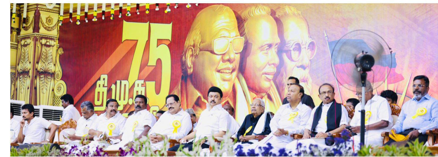 தி.மு.க. விதைக்க நினைக்கும் சிந்தனைகளுக்கான அடித்தளம்தான் தோழமை இயக்கங்கள் ஒன்றாக இருக்கும் இந்த மேடை என்றும், திமுக நூற்றாண்டைக் கடப்பதற்குள், மாநில சுயாட்சிக் கொள்கையை வென்றெடுக்க உறுதியேற்போம் என்றும், முதலமைச்சர் மு.க. ஸ்டாலின் தெரிவித்துள்ளார்.