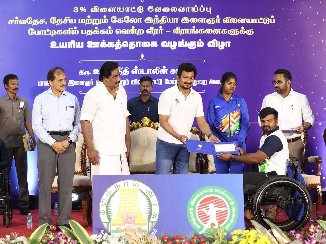 இது தொடர்பாக அமைச்சர் உதயநிதி ஸ்டாலின் தனது சமூக வலைதள பக்கத்தில் வெளியிட்டுள்ள பதிவில், தேசிய மற்றும் பன்னாட்டு அளவிலான விளையாட்டுப் போட்டிகளில் பதக்கங்களை குவித்து வரும் நம் வீரர் – வீராங்கனையரை அங்கீகரிக்கும் விதமாக, தமிழ்நாடு அரசு சார்பில் தொடர்ந்து உயரிய ஊக்கத்தொகை வழங்கி வருகிறோம். அந்த வகையில், இந்தியா மற்றும் வெளிநாடுகளில் நடைபெற்ற தேசிய & பன்னாட்டு அளவிலானப் போட்டிகளில் வென்று தமிழ்நாட்டுக்கு பெருமைத் தேடித் தந்த, 609 வீரர் – வீராங்கனையர் – மாற்றுத்திறனுடைய வீரர் – வீராங்கனையருக்கு கழக அரசு சார்பில் ரூ.16.24 கோடியை உயரிய ஊக்கத் தொகையாக சென்னை கலைவாணர் அரங்கில் நடைபெற்ற நிகழ்வில் இன்று வழங்கினோம்.