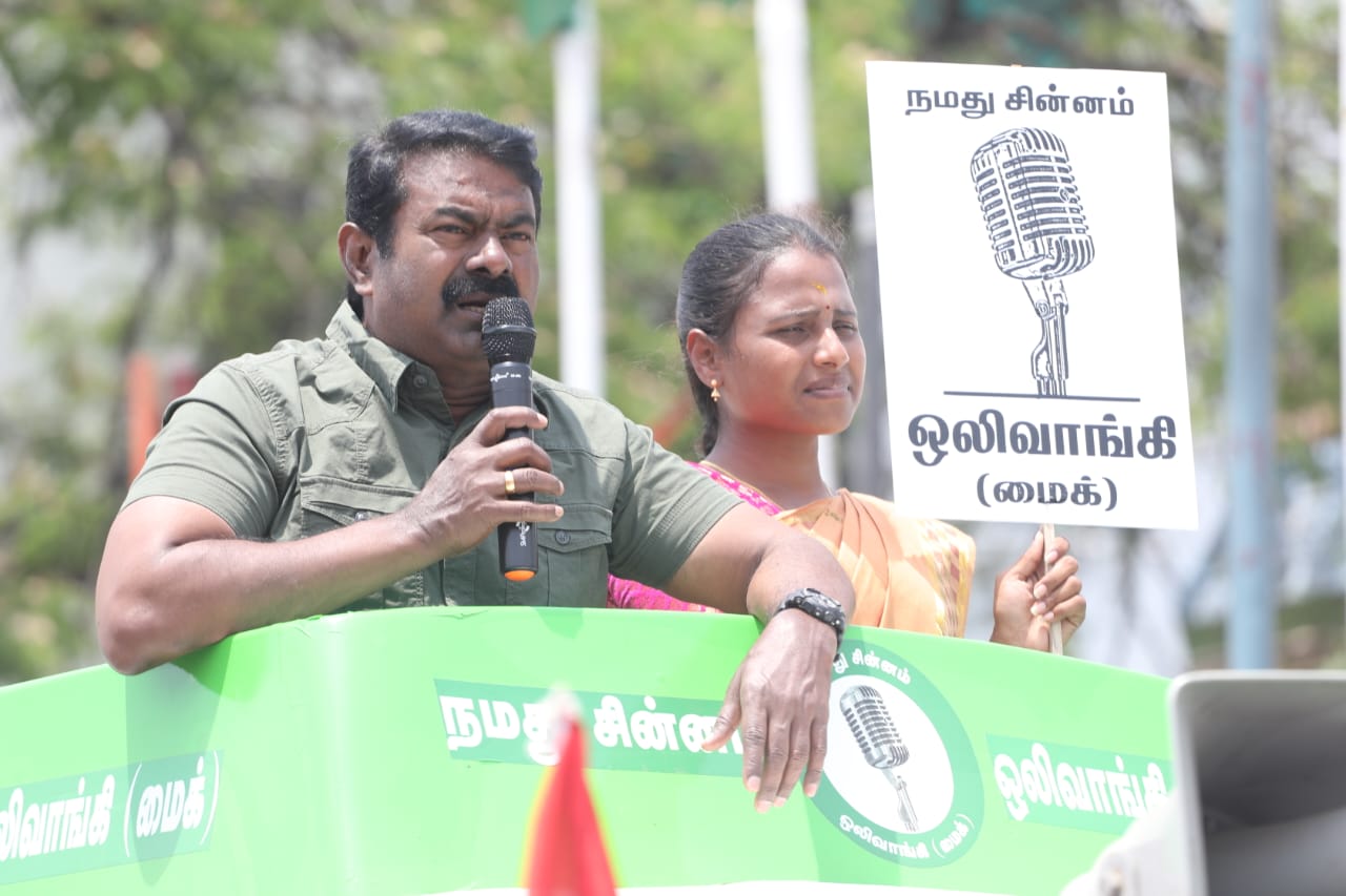 நாடாளுமன்ற தேர்தலையொட்டி பெரம்பலூர் மாவட்ட சுற்றுவட்டார பகுதிகளில் பெரம்பலூர் நாம் தமிழர் கட்சியின் வேட்பாளர் தேன்மொழியை ஆதரித்து அக்கட்சியின் தலைமை ஒருங்கிணைப்பாளர் சீமான் தேர்தல் பிரச்சாரம் மேற்கொண்டார்.