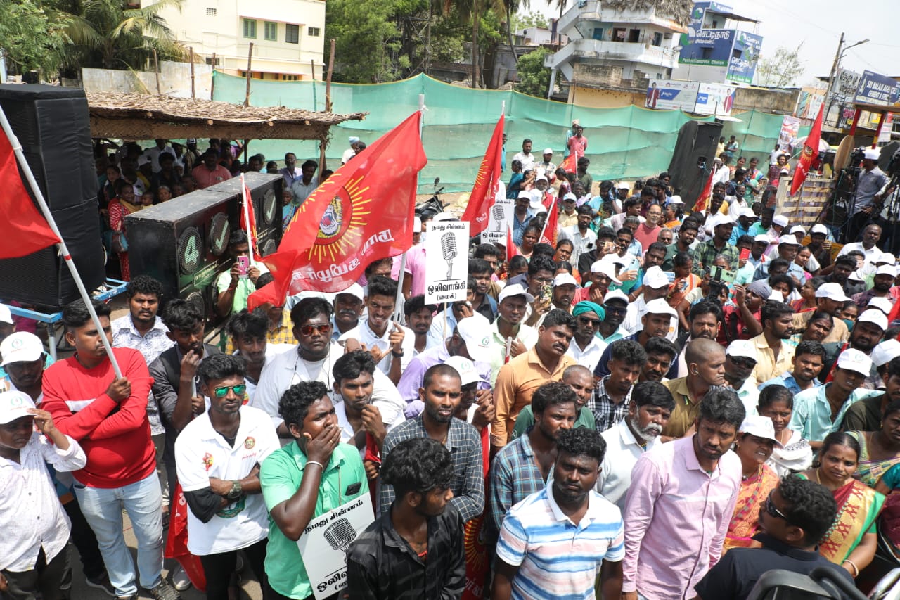 தொடர்ந்து பேசிய அவர் நீயும் என்ன என்னதான் நினைச்சு பாக்குற முதல்ல 8 லட்சம் ஓட்டு போட்டா அப்புறம் 12 லட்சம் பேர் ஓட்டு போட்டா இத 1கோடி 20 லட்சமா மாத்துறதுக்கு போராடிட்டு இருக்கே. ஆக்கிட்டே உன்ன என்ன பண்ணுவேனு தெரியாது. என் தம்பி உதயநிதி இந்தா செங்கல தூக்கிட்டு அலையுறா பாரு அண்ணே எங்களுக்கு சமாதி கட்டுற போது இந்த செங்கல வச்சு சமாதி கட்டுங்கனேனு. நானும் என் மகளும் நடந்தே ஓட்டு கேக்குறோம் இந்தா இவங்கள பாரு சாஞ்சிக்கிட்டே ஒட்டு கேக்குறாங்க…குஜராத் மாடலையும், திராவிட மாடலையும் ஒன்னா போட்டு விடு எந்த நாட்டுலையும் செல்லாதுன்ருவா..புரட்சி எப்போதும் வெல்லும் எங்கள் பிள்ளைகள் அதை எங்களுக்கு சொல்லும். என் இலக்கு ஒன்றுதான் நம் இனத்தின் விடுதலை தமிழ்த்தாய் வாழ்க தலைவர் பிரபாகரன் வாழ்க… என் அன்பு மகள் தேன்மொழி வெல்க வெல்க வெல்க….என்று சொல்லி தன் உரையை முடித்தார்.