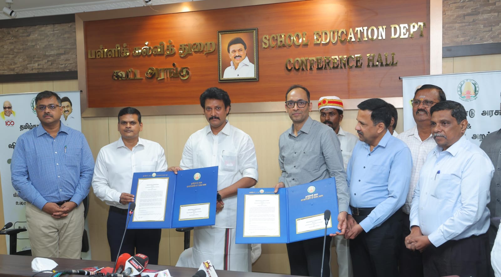 பள்ளிக்கல்வித்துறைக்கும் சிவ் நாடார் அறக்கட்டளைக்கும் இடையே புரிந்துணர்வு ஒப்பந்தம் பள்ளிக்கல்வித்துறை அமைச்சர் அன்பில் மகேஸ் பொய்யாமொழி முன்னிலையில் மேற்கொள்ளப்பட்டது.