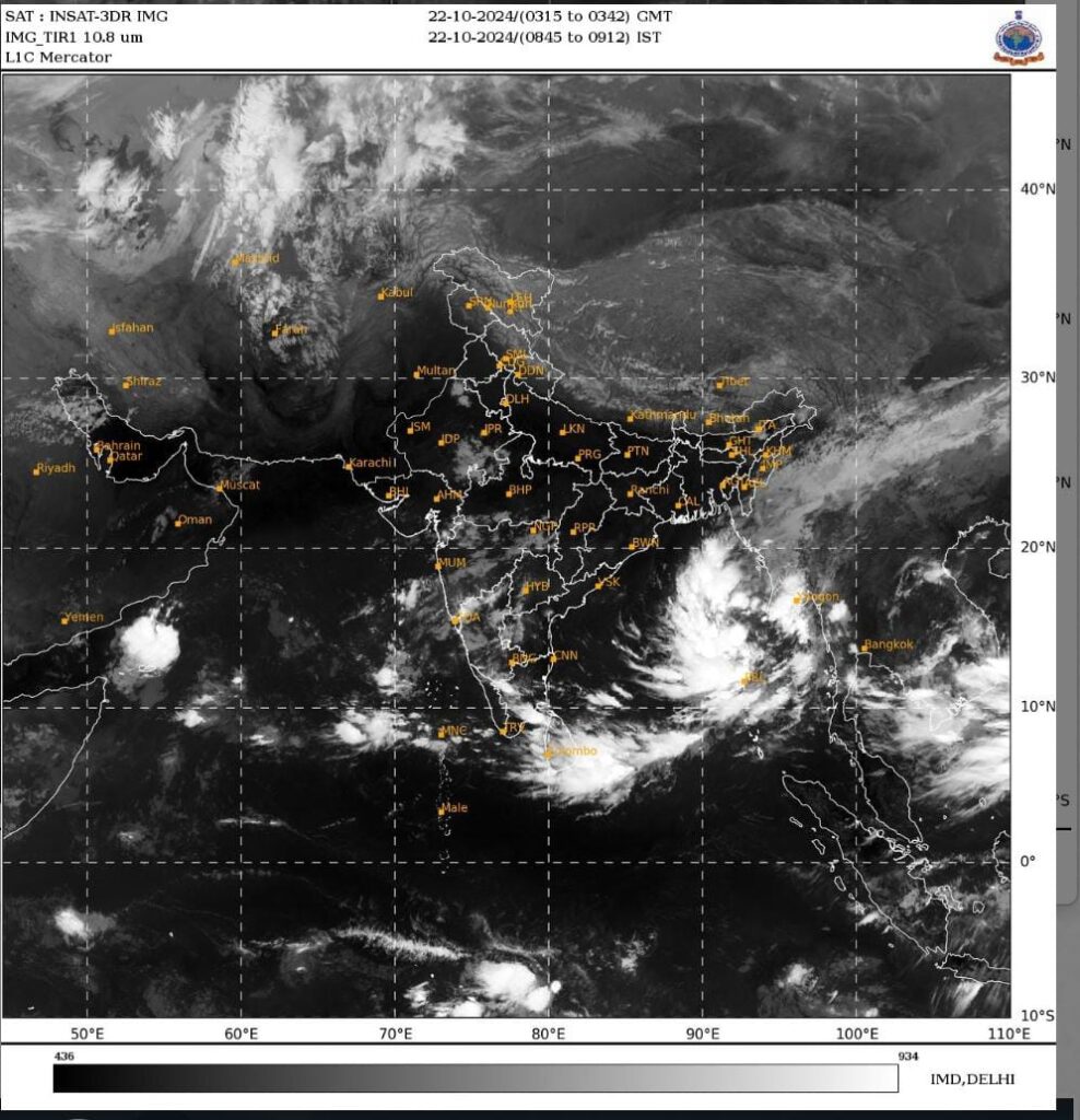 இந்த காற்றழுத்த தாழ்வு மண்டலம் ஒடிசாவின் பாரதீப்-க்கு தென் கிழக்கே 730 கிலோ மீட்டர் தொலைவிலும், மேற்குவங்கத்தின் சாகர்தீவுக்கு தெற்கு தென்கிழக்கு 770 கிலோ மீட்டர் தொலைவிலும், வங்கதேசத்தின் கேபுபுராவிற்கு தெற்கு தென்கிழக்கு 740 கிலோமீட்டர் தொலைவிலும் நிலை கொண்டுள்ளதாக தெரிவித்துள்ள வானிலை மையம், இது தொடர்ந்து மேற்கு வடமேற்கு நோக்கி நகர்ந்து நாளை டானா புயலாக மத்திய கிழக்கு வங்க கடலில் வலுப்பெறும் என்றும் குறிப்பிட்டுள்ளது.