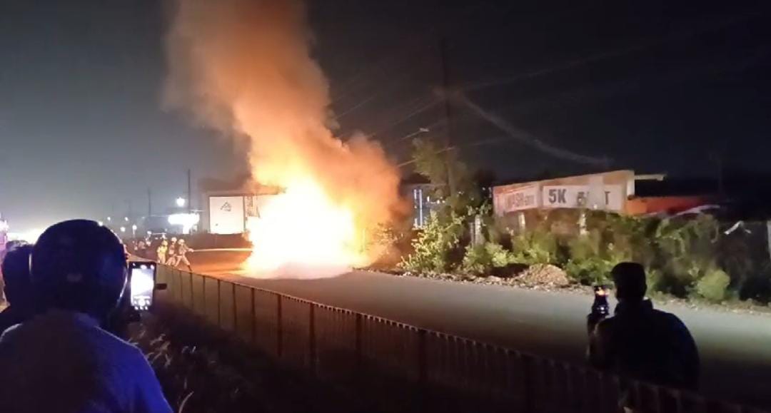 இதனை கவனித்த கார் ஓட்டுநர் நவீன், உடனடியாக சாலையோரம் காரை நிறுத்திவிட்டு, இருவரும் வெளியேறியுள்ளனர். சிறிது நேரத்தில் காரில் தீப்பற்றி மளமளவென கார் முழுவதும் பரவியது. இதனால் சாலையில் கார் தீப்பற்றி எரிந்தது. அருகில் இருந்தவர்கள் இது குறித்து தீயணைப்புத்துறையினருக்கு தகவல் அளித்தனர். அதன் பேரில் சம்பவ இடத்திற்கு விரைந்து வந்த தீயணைப்பு வீரர்கள், தண்ணீரை பீய்ச்சி அடித்து தீயை கட்டுக்குள் கொண்டுவந்தனர்.