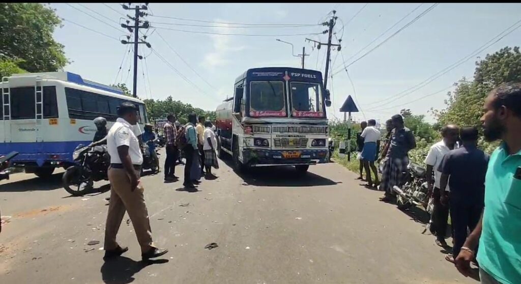நெல்லை மாவட்டம் கங்கைகொண்டான் ராஜபதி பகுதியை சேர்ந்த கண்ணன் என்பவர், தனது மகள்கள் மாரீஸ்வரி, சமீரா, மாமியார் ஆண்டாள் ஆகியோருடன் வண்ணாரப்பேட்டைக்கு இருசக்கர வாகனத்தில் சென்று கொண்டிருந்தார். தச்சநல்லூர் வடக்கு புறவழிச்சாலை ரயில்வே மேம்பாலம் அருகே சென்றபோது கண்ணனின் இருசக்கர வாகனத்தின் மீது சேரன்மகாதேவியில் இருந்து தச்சநல்லூர் நோக்கி சென்ற டேங்கர் லாரி மோதியது.