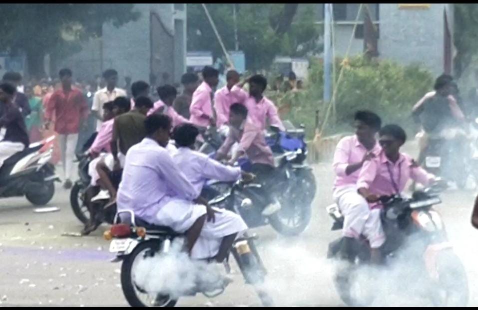 தூத்துக்குடி பாளையங்கோட்டை சாலையில் அமைந்துள்ள வ.உ.சி கலைக் கல்லூரியில் நேற்று சமத்துவ பொங்கல் விழா கொண்டாடப்பட்டது. இந்த நிகழ்ச்சியில் மாணவர்கள் ஒரே வண்ணத்தில் சட்டை மற்றும் வேஷ்டி அணிந்து பொங்கல் விழாவை கொண்டாடினர். பின்னர் கல்லூரியின் நுழைவு வாயில் முன்பாக மாணவர்கள் தங்களது விலை உயர்ந்த இருசக்கர வாகனத்தில் சாகசத்தில் ஈடுபட்டனர். இதனால் அந்த பகுதி முழுவதும் புகைமூட்டம் ஏற்பட்டது. மேலும், அவர்கள் பொதுமக்களை அச்சுறுத்தும் விதமாக இருசக்கர வாகனத்தில் ஒலிகளை எழுப்பி சாகசத்தில் ஈடுபட்டு கொண்டிருந்தனர். இதன் காரணமாக அந்தப் பகுதி வழியாக சென்ற கல்லூரி மாணவிகள், பொதுமக்கள் மற்றும் இருசக்கர வாகன ஓட்டிகள் அவதிக்குள்ளாகினர்.