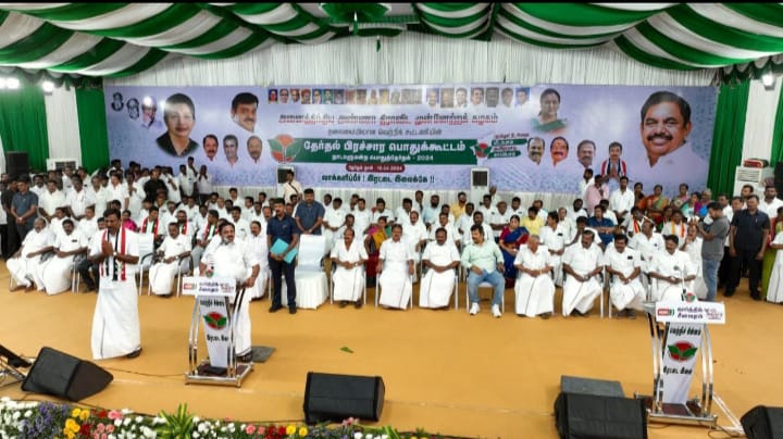 அதிமுகப் பொதுச்செயலாளர் எடப்பாடி பழனிச்சாமி திருப்பூர் நாடாளுமன்றத் தொகுதியில் நடைபெற்ற மாபெரும் பிரச்சாரப் பொதுக்கூட்டத்தில் பங்கேற்று, கழக வெற்றி வேட்பாளர் திரு. அருணாச்சலம் அவர்களுக்கு இரட்டை இலை சின்னத்தில் வாக்கு சேகரித்தார் .திருப்பூர் தொகுதியின் விவசாயம் மற்றும் நீர்வளம் மேம்பட பல்வேறு திட்டங்களை நிறைவேற்றிய அரசு @AIADMKOfficialஅரசு! திமுக கூட்டணி சார்பில் 2019ல் தேர்ந்தெடுக்கப்பட்ட 38 எம்பிக்கள் தமிழ்நாட்டிற்கு எந்த நன்மையும் செய்யவில்லை.