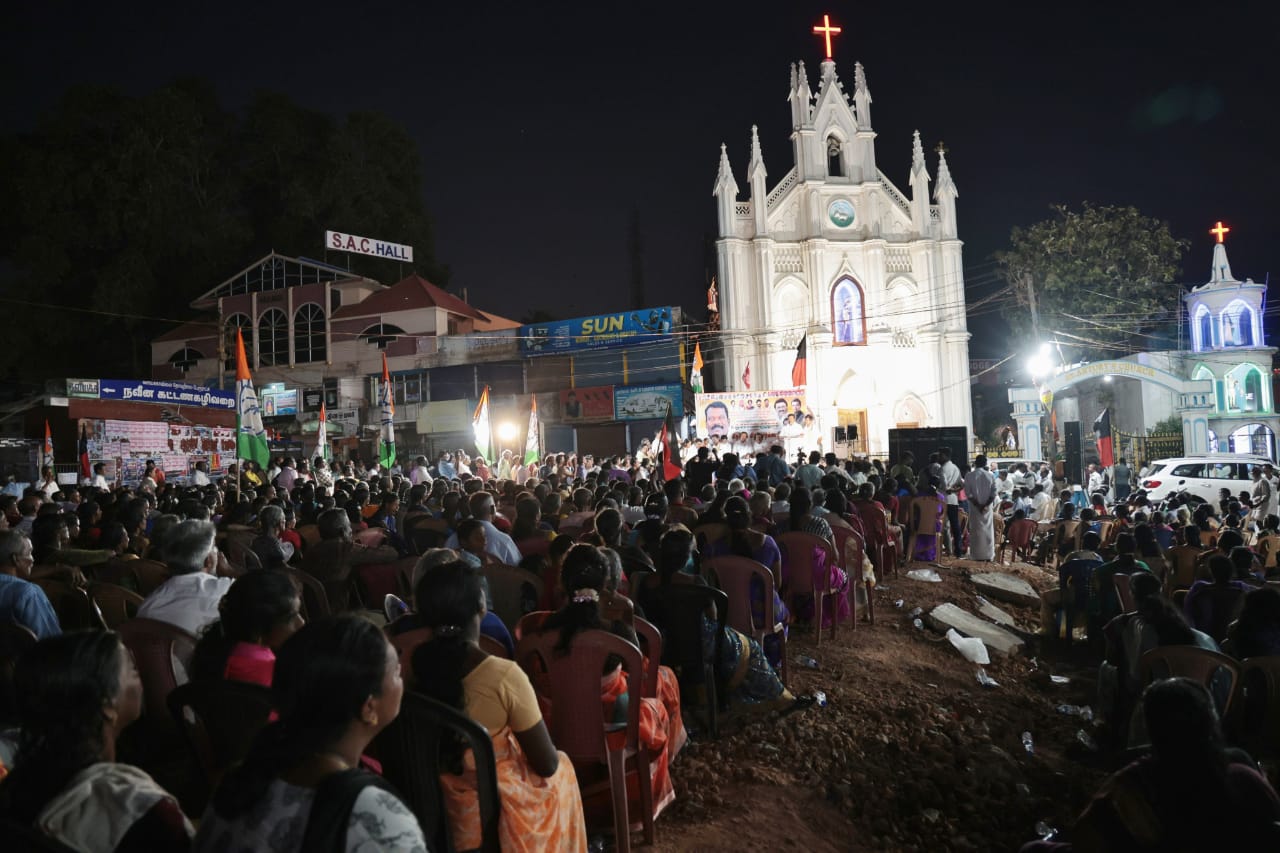 நேற்று (07.04.2024) – கன்னியாகுமரி மாவட்டம், விளவங்கோட்டில் நடைபெற்ற பிரமாண்ட பொதுக்கூட்டத்தில் தமிழ்நாடு காங்கிரஸ் கமிட்டி தலைவர் திரு.கு.செல்வப்பெருந்தகை எம்.எல்.ஏ., அவர்கள் இந்திய தேசிய காங்கிரஸ் கட்சியின் விளவங்கோடு சட்டமன்ற இடைத்தேர்தல் வெற்றி வேட்பாளர் டாக்டர் தாரகை கட்பர்ட் அவர்களுக்கும், கன்னியாகுமரி நாடாளுமன்ற தொகுதியின் வெற்றி வேட்பாளர் திரு.விஜய் வசந்த் அவர்களுக்கும் பரப்புரையாற்றி வாக்கு சேகரித்தார்கள்.