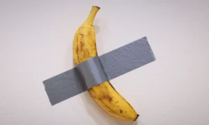 ஆனால், இந்த வாழைப்பழத்தை சாதாரண வாழைப்பழம் என்று தவறாக நினைத்துவிடாதீர்கள், இது புகழ்பெற்ற ‘காமெடியன்’ மொரிசியோ கட்டெலன் உருவாக்கியது.