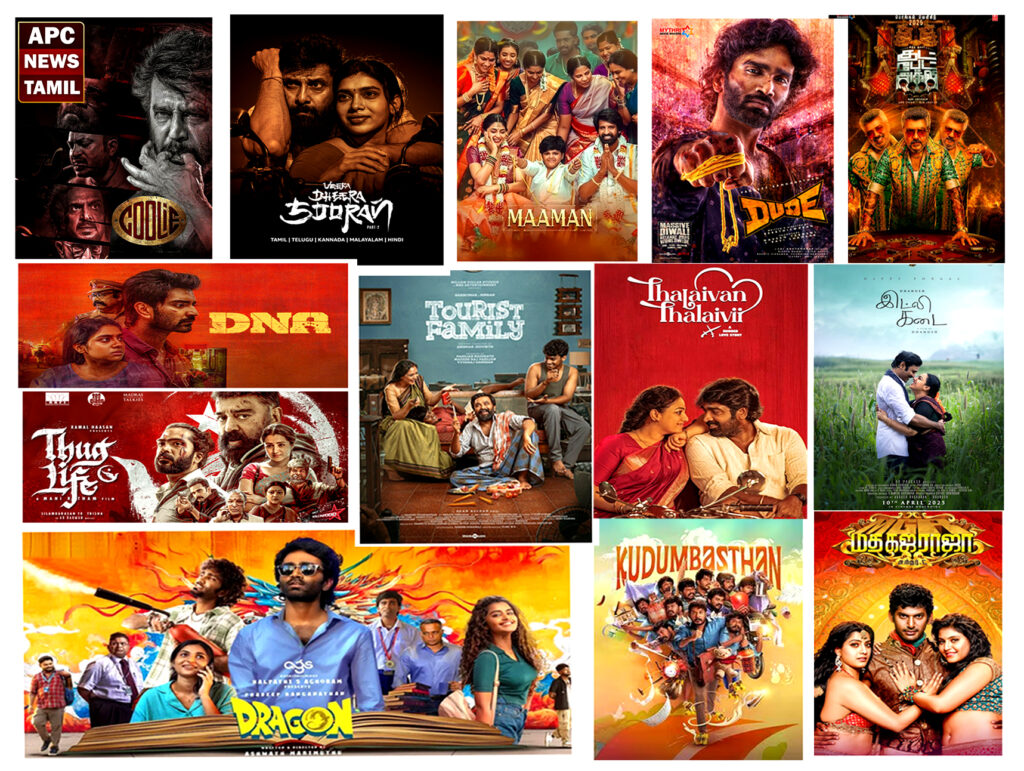 இளைஞர்களின் அபிமான நட்சத்திரமாக உருவெடுத்துள்ள பிரதீப் ரங்கநாதன் நடிப்பில், அஷ்வத் மாரிமுத்துவின் இயக்கத்தில் வெளியான டிராகன் (Dragon) திரைப்படம் ₹150 கோடி வசூலித்தது. மேலும், அஜித் குமார் – மகிழ் திருமேனி கூட்டணியில் நீண்ட எதிர்பார்ப்புக்குப் பின் வெளியான விடாமுயற்சி திரைப்படம் ₹136 கோடி வசூலைப் பெற்றது. இறுதியாக, பிரதீப் ரங்கநாதன் நடிப்பில் கீர்த்திஸ்வரன் இயக்கத்தில் வெளியான டியூட் (Dude) திரைப்படம் ₹114 கோடி வசூலித்து, இந்த ஆண்டின் டாப் 5 வெற்றிப் படங்களின் பட்டியலில் இடம்பிடித்தது.